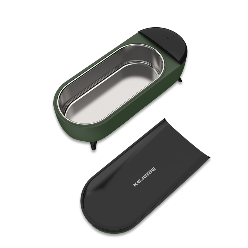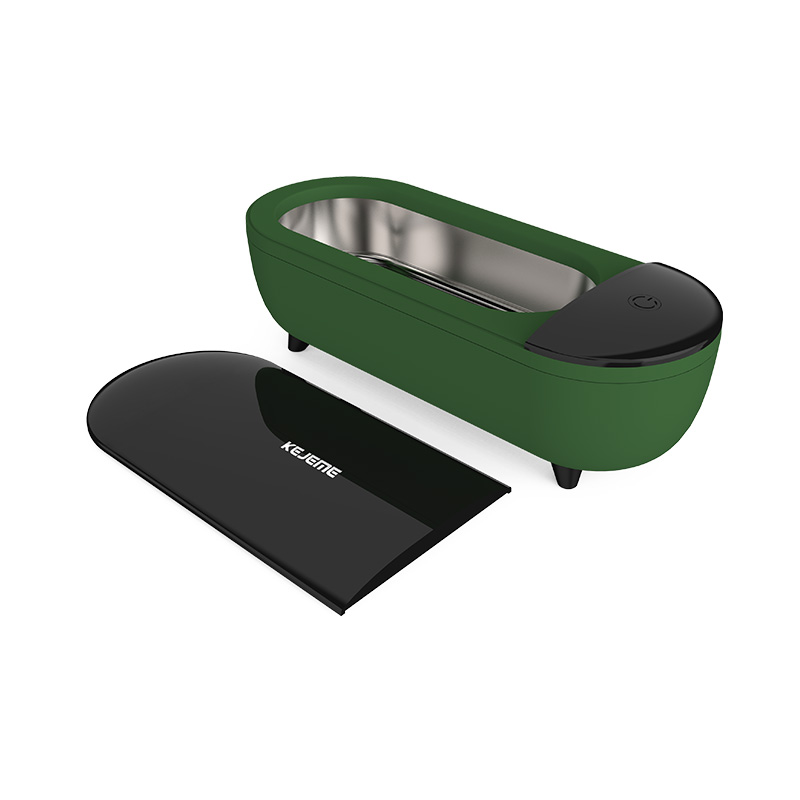 产品型号:KM-927 超声频率:46,000Hz 内胆材料:全不锈钢冲压槽SUS304 外壳材料:塑胶 槽体容量:360ml 时间控制:3分钟 电源电压:DC12V 1.5A 220V 50/60hz 超声功率:18W 内胆尺寸:170x68.7x36mm 外形尺寸:230x90x730mm 盖子颜色:古典绿