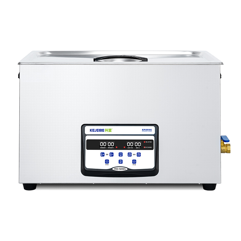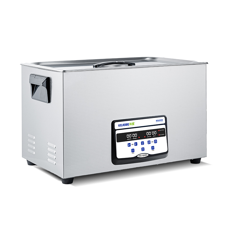 产品型号:KM-1030Pro 内胆材料:SUS304不锈钢冲压槽 震头数量:15枚 容量大小:30 L 超声频率:40KHZ 超声功率:900W 加热功率:1000W 时间控制:数显1-99分钟 温度控制:常温-80°C 内槽尺寸:500 x 300 x 200 mm 外形尺寸:530 x 325 x 325 mm 电源电压:AC 220~240V, 50/60Hz 其他功能:脱气、变波