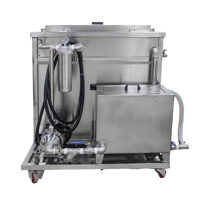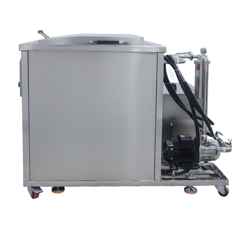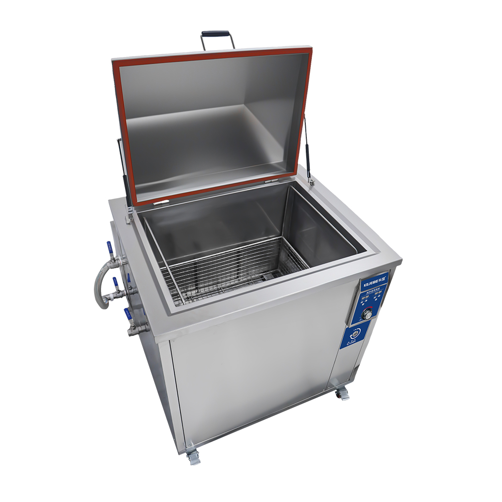 产品型号:KM-1072G 内槽材料:SUS304不锈钢2mm氩焊槽 震头数量:72枚 容量大小:360 L 超声频率:40KHZ (可选28KHZ) 超声功率:3600W 加热功率:9000W 时间控制:数显1-99分钟 温度控制:常温-95°C 内槽尺寸:1000 x 600 x 600 mm 过滤循环:浮油/漂浮物 滤芯精度:10μm 外形尺寸:1460 x 1485 x 1125 mm 电源电压:三相380V