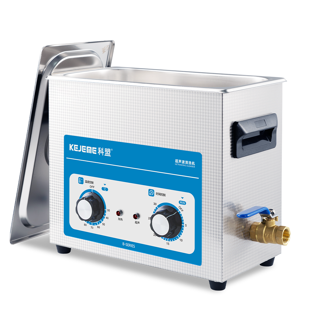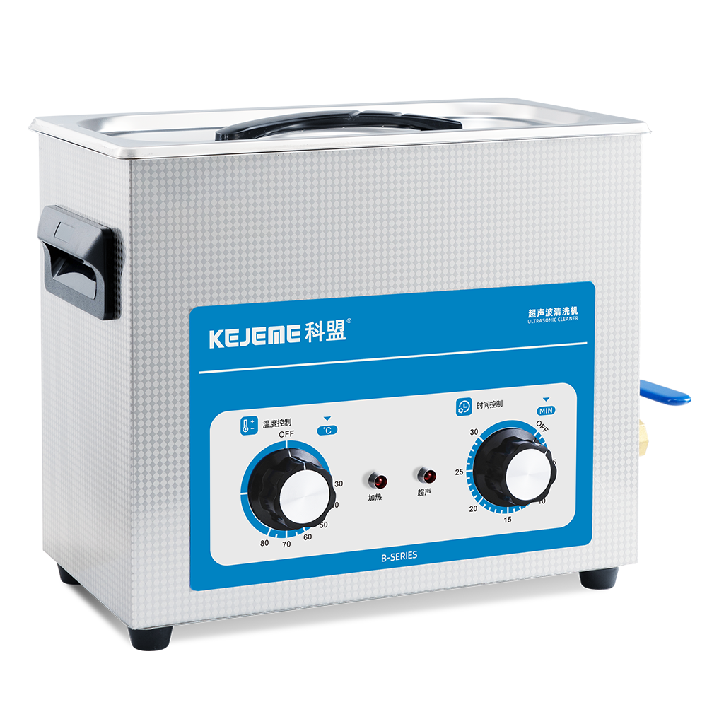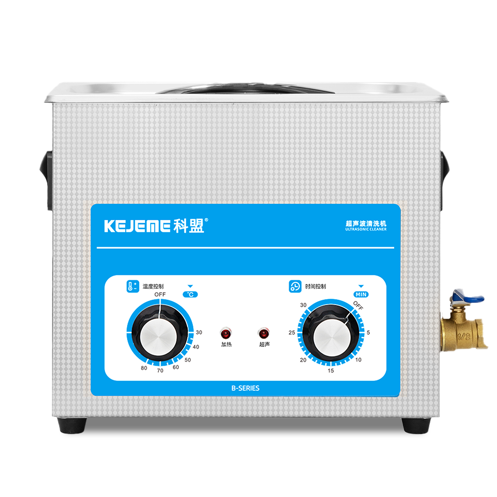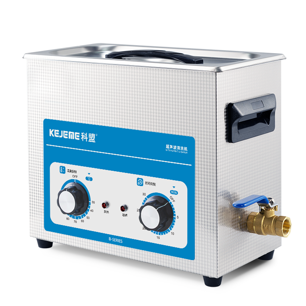 产品型号:KM-36B 内胆材料:SUS304不锈钢冲压槽 震头数量:3枚 容量大小:6 L 超声频率:40KHZ 超声功率:180W 加热功率:200W 时间控制:机械控制定时1-30分钟 温度控制:常温-80°C 内槽尺寸:300 x 150 x 150 mm 外形尺寸:325 x 180 x 280 mm 电源电压:AC 220~240V, 50/60Hz