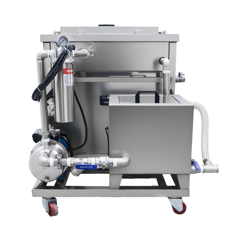 产品型号:KM-1018G 内槽材料:SUS304不锈钢2mm氩焊槽 震头数量:18枚 容量大小:53L 超声频率:40KHZ (可选28KHZ) 超声功率:900W 加热功率:1500W 时间控制:数显1-99分钟 温度控制:常温-95°C 内槽尺寸:500 x 350 x 300 mm 过滤循环:浮油/漂浮物 滤芯精度:10μm 外形尺寸:1210 x 985 x 880 mm 电源电压:AC 220~240V, 50/60Hz